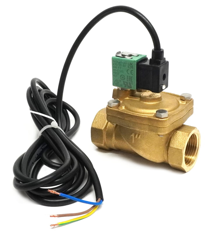1" BSP Solenoid Valve. WRAS Approved. Two Way Normally Open Pilot Diaphragm DZR Brass Body EPDM Seals 0.35-10 Bar (AC) 230VAC