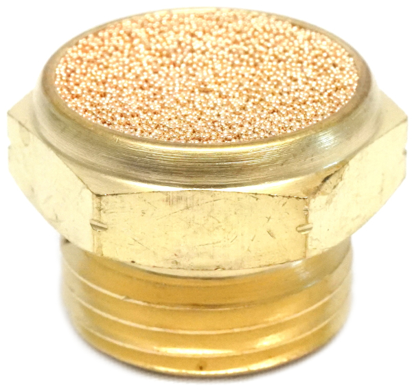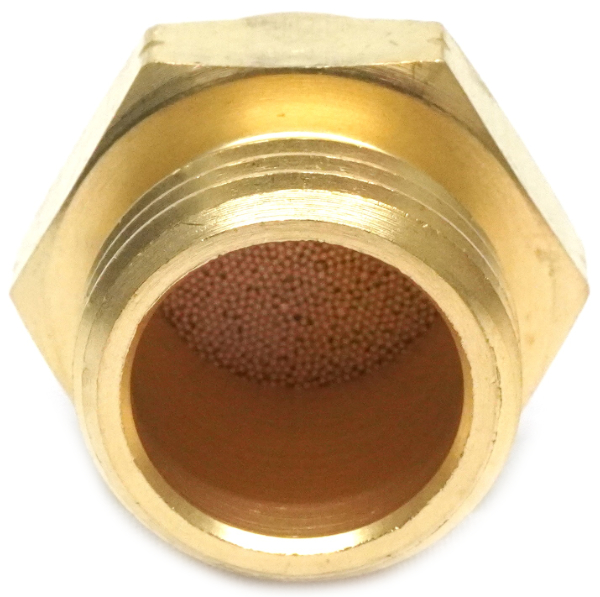 1/2” BSP Muffler, silencer, bug screen. Brass. Compact design