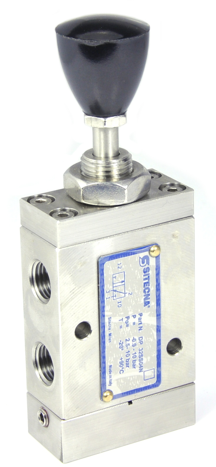 The Sitecna DP 3/2 & 5/2 manual spool valve from Sitecna combines rugged construction, high flow rates and comprehensive certification to deliver optimum performance in harsh conditions. The DP series is machined from solid 316L stainless steel, and is ideal for use in valve automation systems and pneumatic control systems where corrosion resistance and high flow is crucial