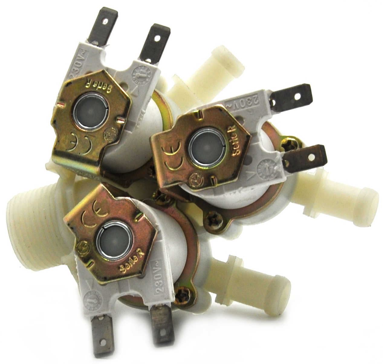 Dishwasher Fill Solenoid Valve 3/4" BSPM x 10.5mm Triple Hose Tail CP.SV.10048