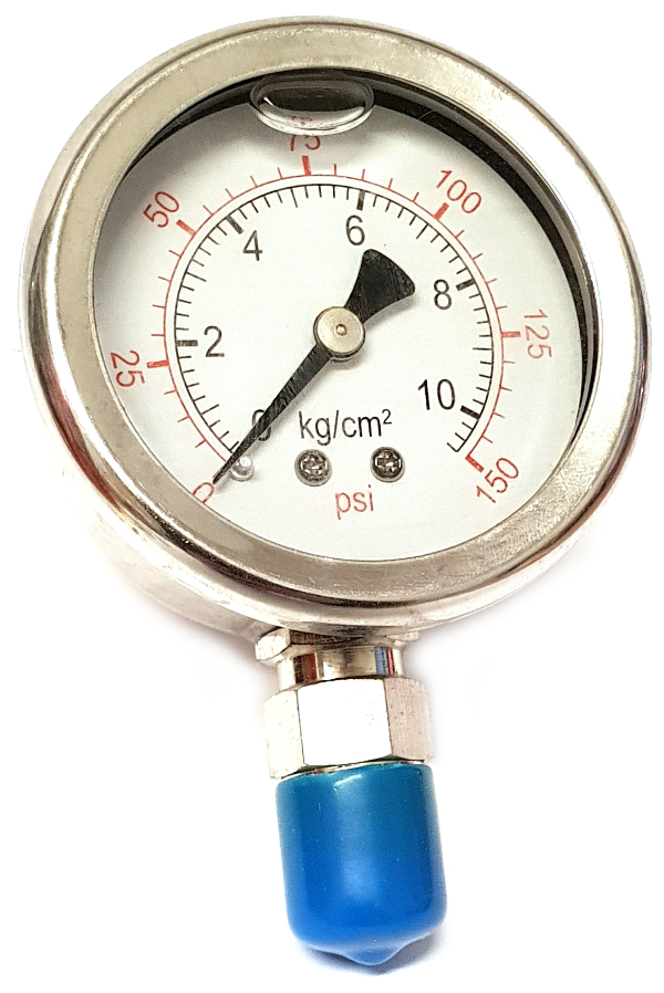 Pressure Gauge Stainless Steel, 1/4" BSPT, Measuring Range: 0~10 kgf/cm2 Liquid Filled