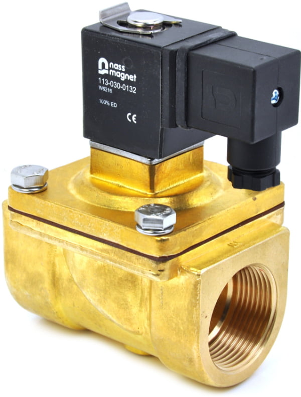 General purpose solenoid valve for liquids, chemicals and gaseous media. Direct acting and does not require pressure to operate. Ideal for system drain applications, chemical line drain etc. VITON seals for general media and chemical applications. If unsure of suitability, please contact us. Model: WK50-V. 2"BSP Two Way Normally Closed. Direct Acting. Brass body. VITON seals. 0-10bar. 230VAC