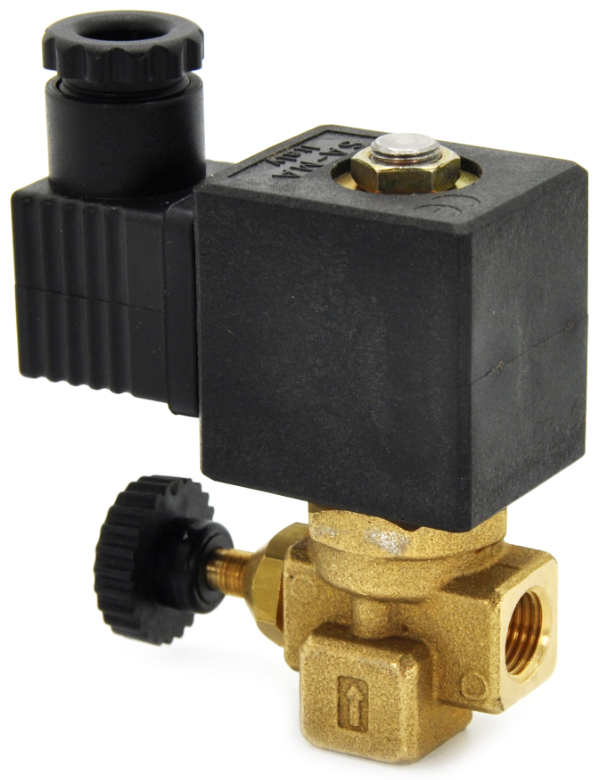 1/4"BSP Solenoid Valve Two Way Normally Closed. Direct Acting. Brass body. 0-15bar (AC), 0-8bar (DC). VITON seals. DIN 230VAC solenoid coil. Complete with DIN 43650-A electrical socket connector code: 20221000