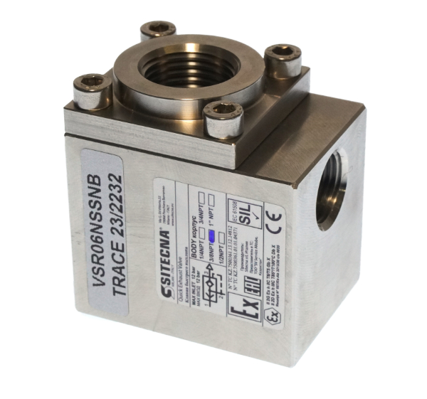 3/8"NPT quick exhaust valve 316LSS, pressure range 2-12bar, temp range -20 +80degC, ATEX II2GD c IICT6 X. SIL3