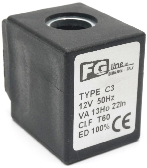 Solenoid Valve Coil C3. Manufacturer: FG Line. 12VAC 20/13VA 50 Hz CL.F. 100% ED