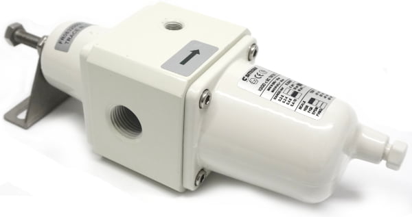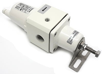Copper free aluminium filter regulator, relieving type, 1/2"NPT, 0.4-8bar, max inlet 25bar, 25 micron element, manual drain, temp range -20 +80degC, NBR seals, 1/8"NPT gauge ports, mounting bracket. ATEX II2GD c IICT6 X