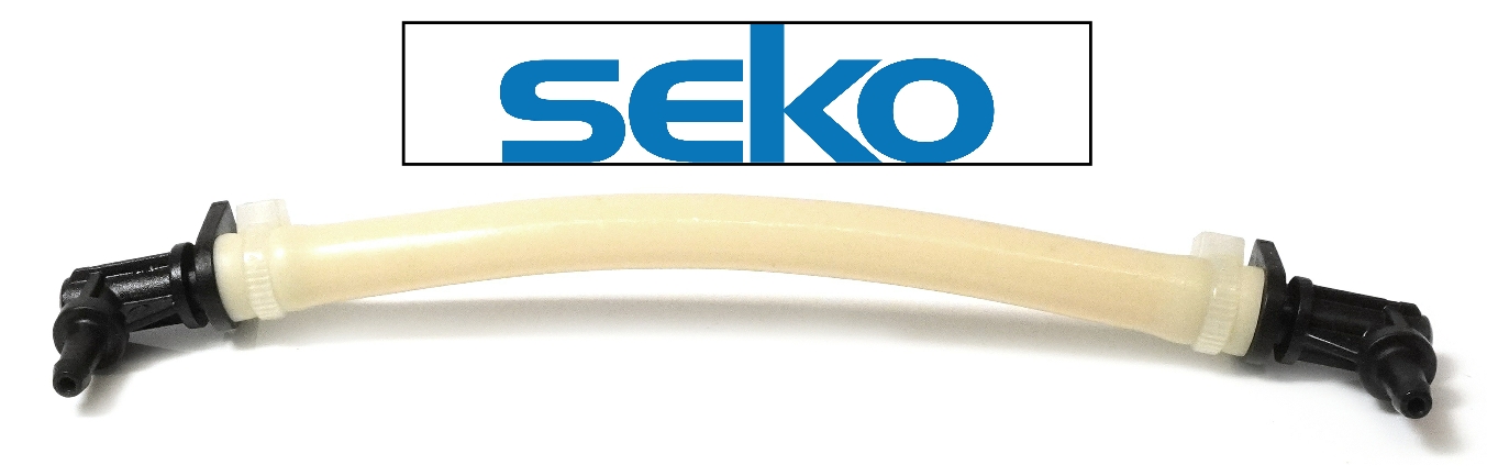 SEKO Detergent Dosing Pump Tubing SANTOPRENE HOSE ø 6x10 mm Hose end fittings: 90° black hose: ø 4x6 mm Overall length: 180 mm Media: detergent SEKO OEM: 9900090364