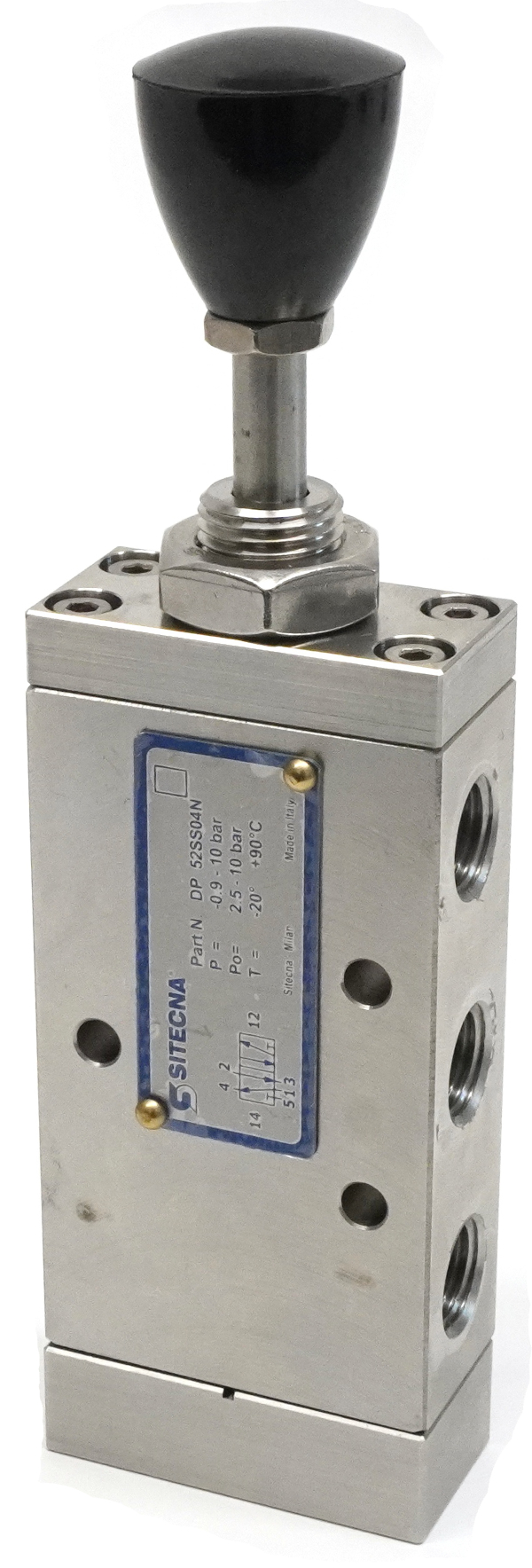 Spool Valve. 316L stainless steel 5/2. Manual operated spring return, 1/4"NPT, working pressure -0.9-10bar, temp range -20 +80degC, ATEX II2GD c IICT6 X