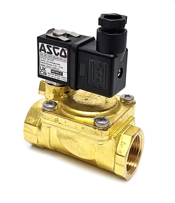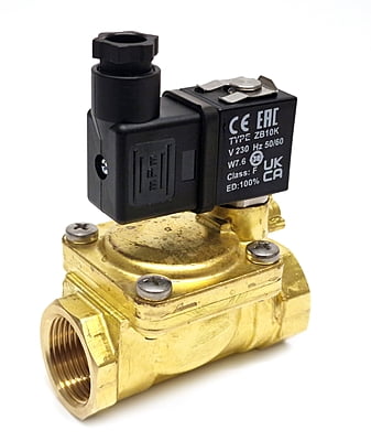 3/4" BSP Solenoid Valve. WRAS Approved. Two Way Normally Open Pilot Diaphragm DZR Brass Body EPDM Seals 0.35-10 Bar (AC) 230VAC IP65 Din 43650-B Connector