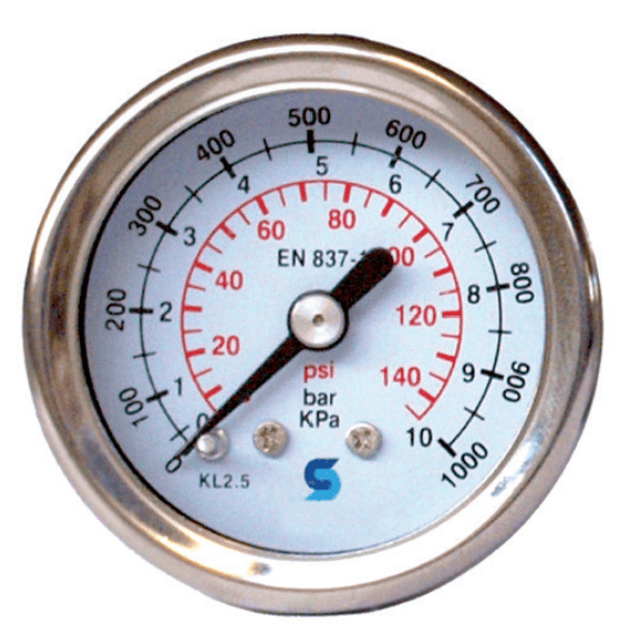ATEX Pressure Gauge 1/8"NPT Back Mount. 0-10bar Triple Scale