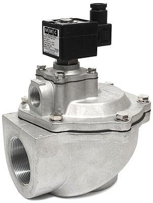 2" BSP Angle Type Pulse Solenoid Valve. Aluminium body. VITON seals. 3-8bar operating pressure range. Ambient Temperature: -5 to +55C. Media: Clean air. Diaphragm Life: over 1 million cycles. 24VDC 18W. DIN 43650-A electrical socket connector