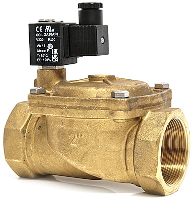 2" BSP Solenoid Valve. Priority Demand Valve. WRAS Approved. Two Way Normally Open Pilot Diaphragm DZR Brass Body EPDM Seals 0.5-10 Bar (AC) 230VAC IP65 Din 43650-B Connector